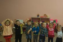 Каждое утро со старшей группой занимаемся зарядкой. Занятия проводит воспитатель Вера Ивановна. Детям очень нравится.