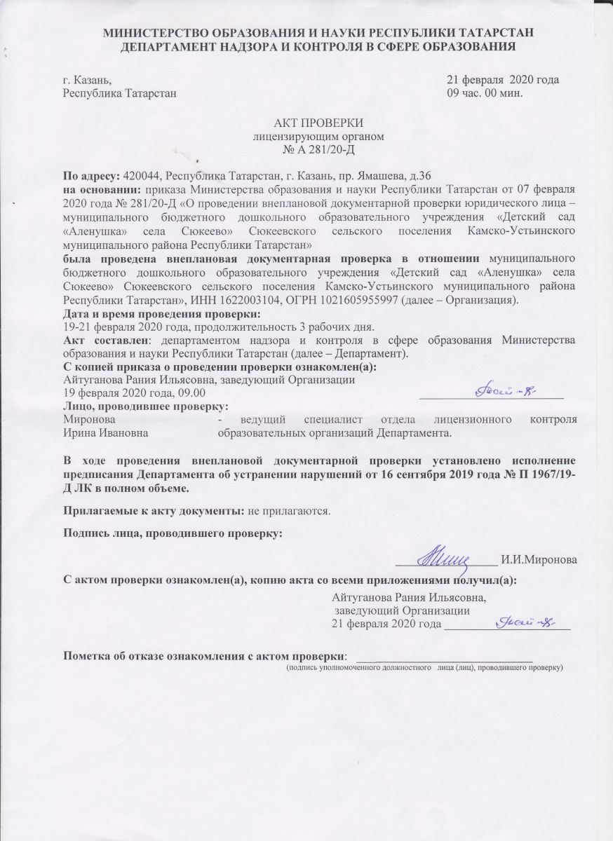 Короткое название: МБДОУ "Детский сад "Аленушка" с.Сюкеево" Камско-Устьинского муниципального района РТ