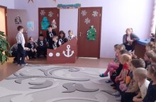 В предверии Нового года ученики нашей школы побывали в гостях у ребят из детского сада и выступили со сказкой "Как Артём учился считать до 10". Маленькие зрители слушали очень внимательно и наблюдали за происходящим действием, которое комментировал Сказочник ( Ульяна Сорокина) . Мальчик Артём (Родин Артём) учился считать и считал ребят, которых встречал по пути: Аня (Анна Лизнёва), Егор (Егор Гребнёв), Глеб ( Глеб Антонов), Кристина ( Кристина Рожкова), Юля ( Юлия Климачёва). Но ребятам это не нравилось и они хотели его наказать, Артём от испуга забежал на парусник, который начал тонуть. Капитан ( Адель Ахмадуллин), юнга ( Дарина Голубина), матрос ( Елизавета Белова) и повар ( Дарья Глинникова) стали кричать, что парусник может выдержать только 10 человек. Артём всех сосчитал и спас. С помощью сказки старшие ребята показали младшим, что учиться интересно и полезно. Мальчики и девочки наградили выступающих бурными аплодисментами словами благодарности (руководитель - Удачина М.Н.)