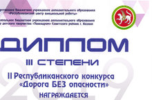 Поздравляем Миннивалиева Л, обучающегося 4 класса нашей школы с 3 местом на республиканском этапе конкурса "Дорога БЕЗ опасности"