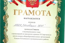 команду обучающихся нашей школы, занявшую 1 место в муниципальном этапе соревнований по шахматам в рамках II Спартакиады среди общеобразовательных организаций Камско-Устьинского муниципального района (учитель - Сорокин С.Е.)