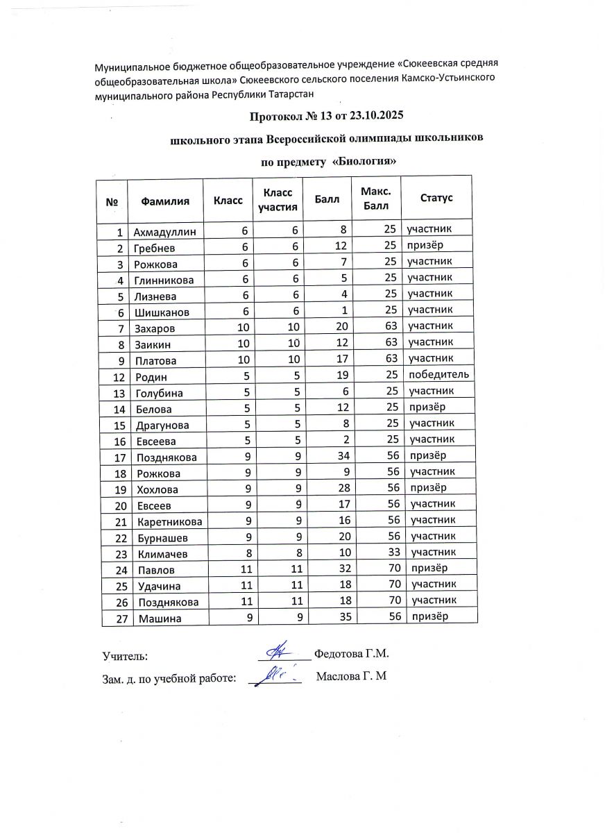 Приказ МБОУ "Сюкеевская СОШ" № 110 от 12.09.2025 "О проведении школьного этапа Всероссийской и Республиканской олимпиад школьников в МБОУ «Сюкеевская СОШ» в 2025/2026 учебном году"