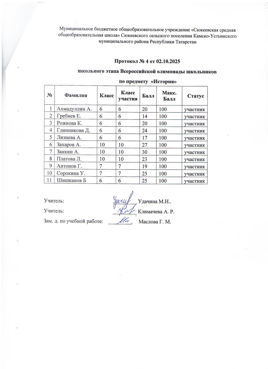 1. Приказ МКУ «Управление образования» К-У МР РТ  №337 от 10.09.2025 «О проведении школьного этапа Всероссийской и Республиканской олимпиад школьников в Камско-Устьинском муниципальном районе в 2025/2026учебном году