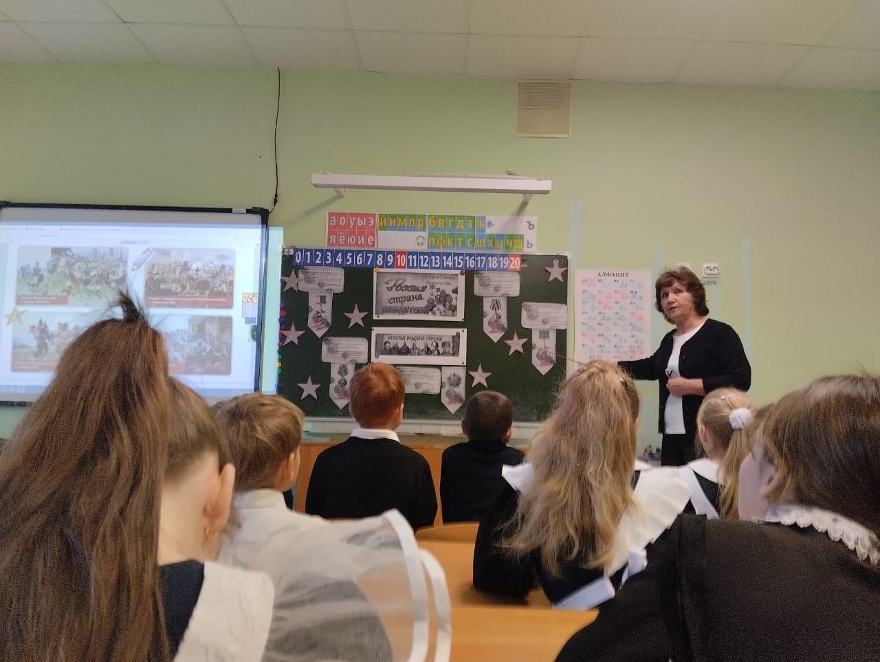 Тема этого занятия – «Россия – страна победителей» – напомнила нам о героическом прошлом нашей страны и о тех, кто посвятил свою жизнь защите Родины. Мы говорили о великих победах, которые ковались не только в битвах, но и в мирное время – в науке, спорте, культуре.
