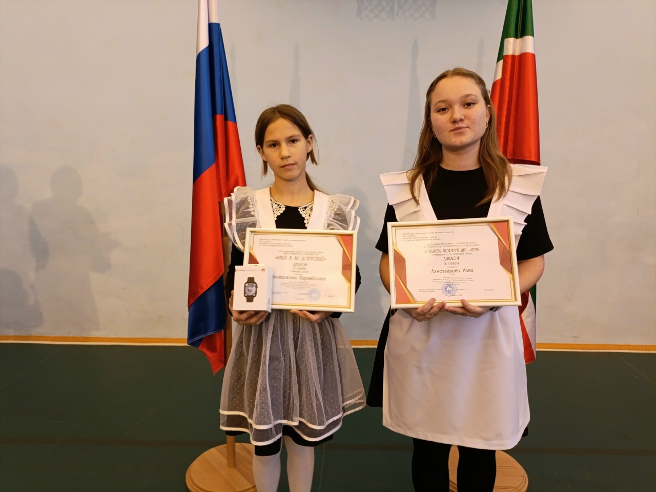 Лисицовская Карамболина, ученица 5 класса (рук. Миннизянова Л. В.), и Ахметзянова Алия, ученица 11 класса (рук. Хасанова Г. И.), стали призёрами конкурса! Они награждены дипломами и ценными призами.