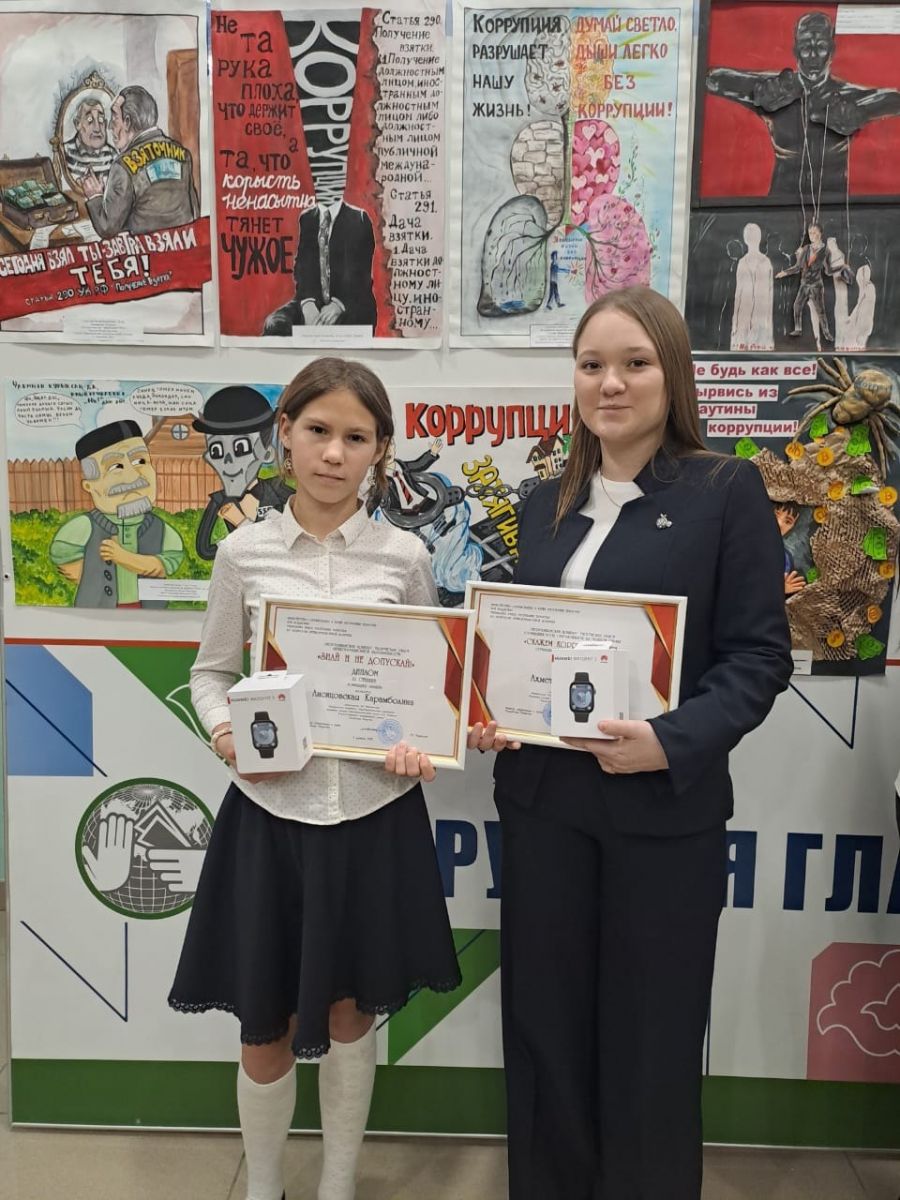 В церемонии приняли участие две финалистки из нашей школы. Они представили оригинальный плакат и сочинение-эссе, направленные на пропаганду антикоррупционных ценностей и правовой грамотности.