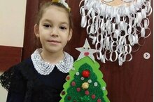 "Ёлочка - светофор". Габдуллина Рамина, ученица 1 класса участвует в конкурсе поделок по безопасности дорожного движения.