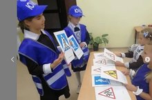ПДД в школе. В рамках месячника безопасности отряд ЮИД проводит занятие с первоклассниками, изучают дорожные знаки.