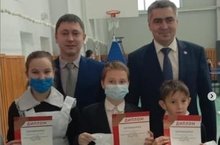 Вручение грамот и подарков главой района Н. А. Вазыховым и начальником Отдела по делам молодёжи и спорта И. Х. Хуснутдиновым победителям районного конкурса "ГТО - в моей жизни": Аухадиева А. (6 класс) - 1 место, Минкин А. (5 класс) - 2 место среди учащихся 5-8 классов.