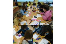 В пришкольном лагере был организован "Час творчества". Ребята рисовали своих любимых героев, картины природы. Из детских работ получилась прекрасная выставка.