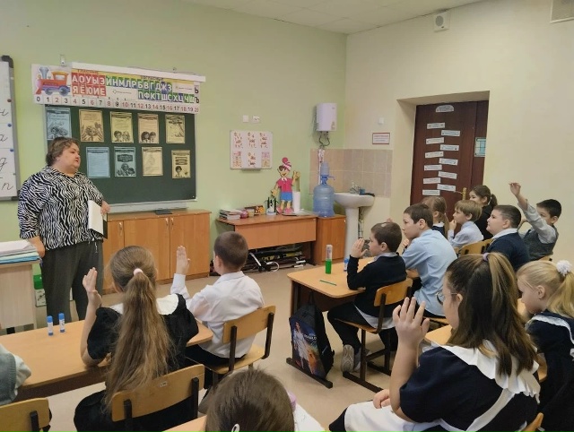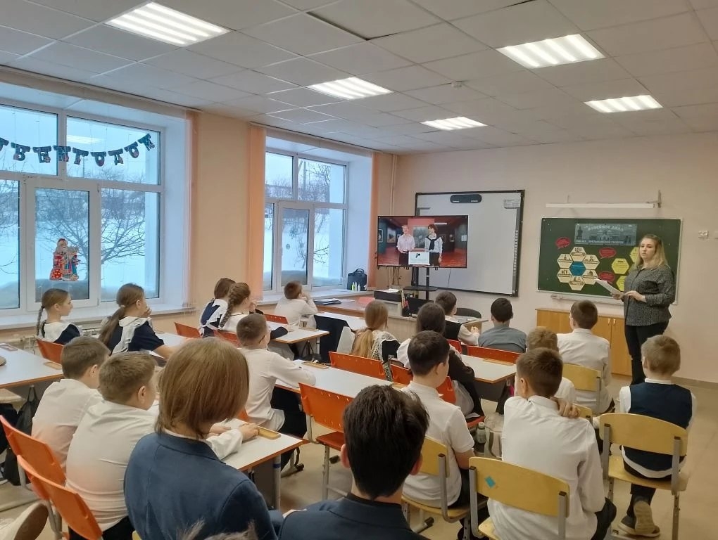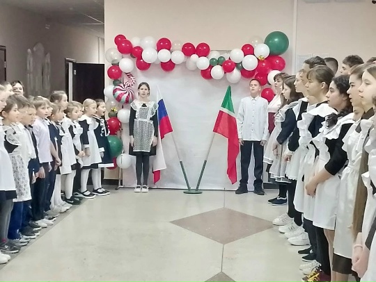 Новая учебная неделя 19 января 2026 года в нашей школе началась, как всегда, с торжественной линейки, посвящённой выносу государственных флагов и исполнению гимнов Российской Федерации и Республики Татарстан.
