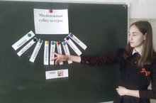 С целью формирования адекватного отношения к различным видам неформальных молодежных объединений, способствующего осуществлению социально одобряемой деятельности и препятствующего вступлению в асоциальные молодежные объединения 10 мая был проведен классный час в 7классе. Дети назвали наиболее знакомые им субкультуры и высказали свое отношение к ним. Более подробную информацию подготовила и выступила с ней Узбекова Диана.