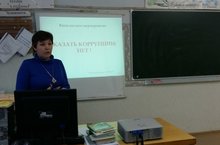 2 декабря в 9-10 классах проведено внеклассное мероприятие на тему: «Сказать коррупции «Нет». Цель мероприятия: формирование основ правовой культуры учащихся; усвоить понятие коррупция, понять чем она опасна для общества, познакомиться с антикоррупционным законодательством; способствовать созданию антикоррупционной атмосферы в обществе, предупреждению коррупционного поведения граждан.