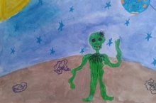 Вселенная манит нас, вперёд к неизведанным мирам. День начался с удивительной утренней разминки перед «полётом». Мультфильм о планетах Солнечной системы поразил ребят красотой и мощью. Так захотелось туда, ну что же конкурс рисунков помог ребятам постичь то, о чём мечтают. В гостях у ребят побывал «гуманоид» и рассказал ребятам о вреде курения.