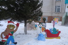 Мастерская Деда Мороза набирает силу. Учащиеся школы все дружно вышли на улицу, чтобы преобразить территорию школы. Каждый класс сотворили целый мир из зимних композиций и сказочных существ.