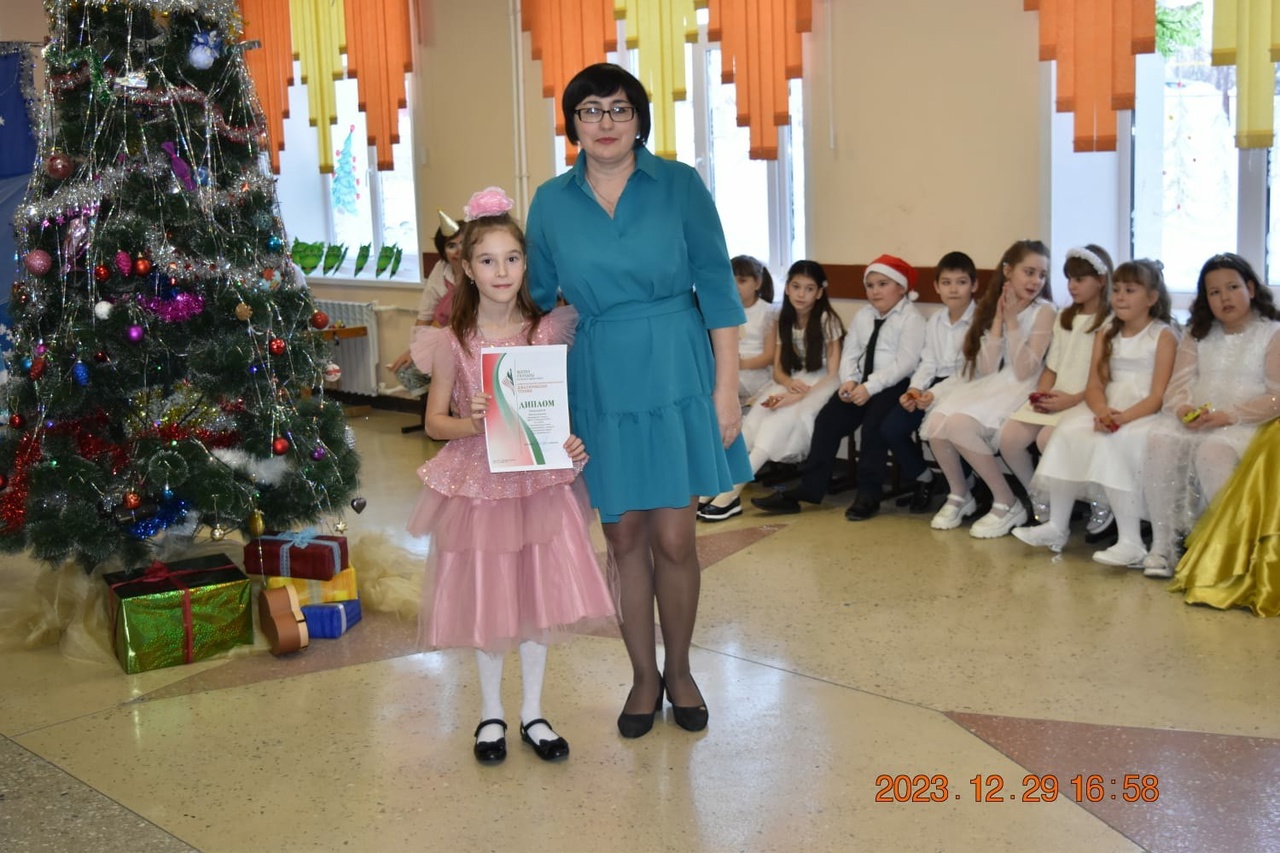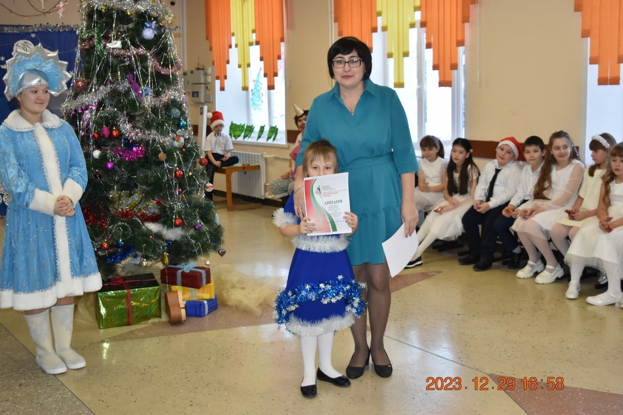 На новогоднем мероприятии начальных классов по традиции подвели итоги участия учащихся в предметных олимпиадах. В 2023 году ученики и учителя начальных классов принесли в копилку достижений 4 призовых места в муниципальных предметных олимпиадах. В благодарность ученики были награждены денежными сертификатами на различные суммы.