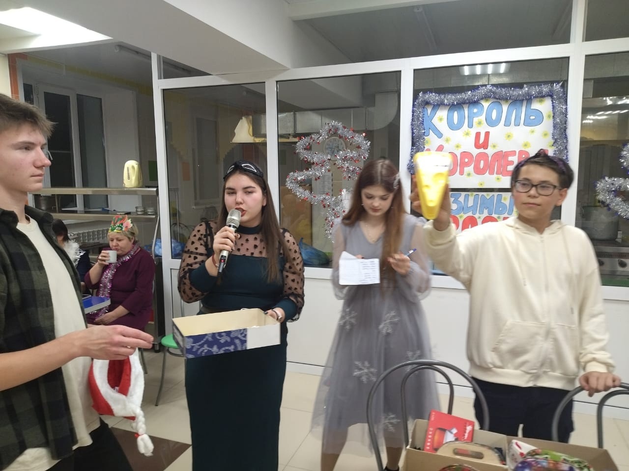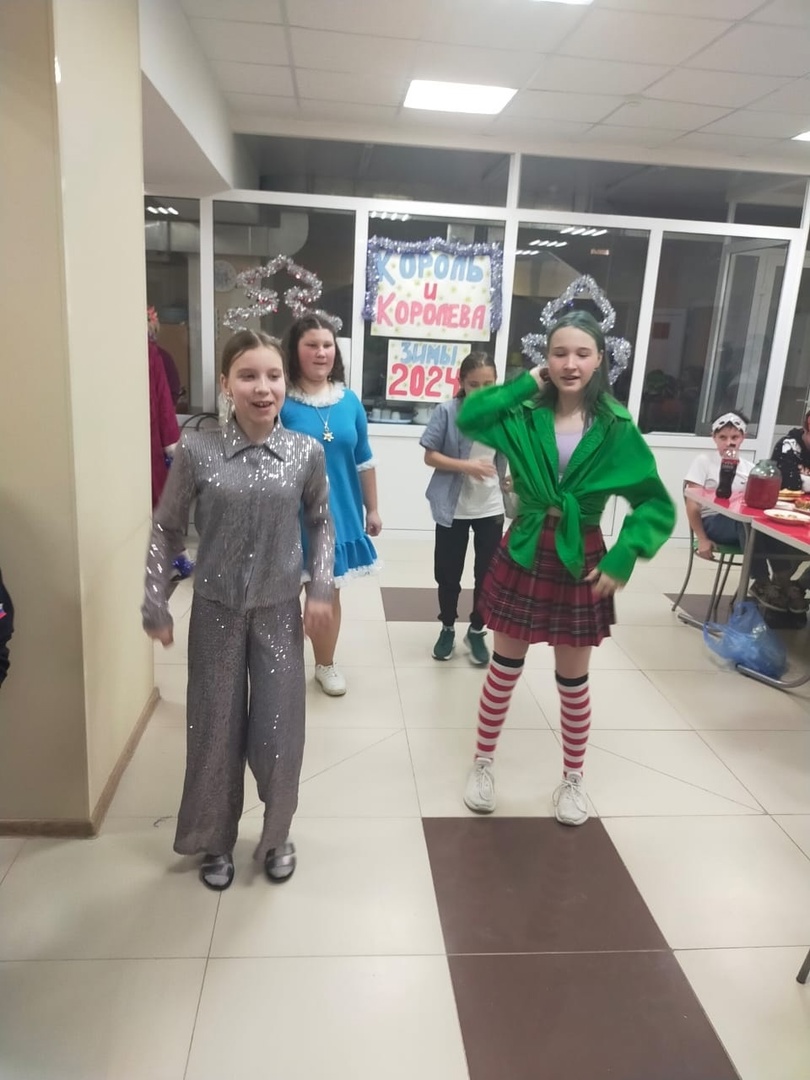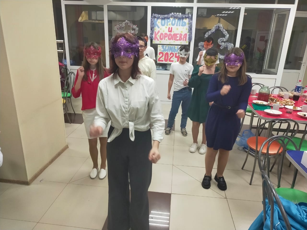 Школьный новогодний зал собрал старшеклассников на весёлый конкурс "Король и королева зимы". Каждый класс выдвинул своих кандидатов на высокое зимнее звание. Конкурсы и испытания перемежались новогодними песнями и танцами. Все претенденты показали смекалку, творчество и юмор.