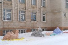 Завершилась постройка снежного городка вокруг территории школы.
