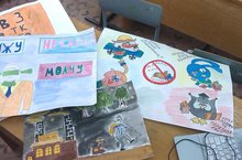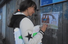 Ученики среднего звена провели акцию "Мы за чистоту в поселке", распространяя рисунки воспитанников детского сада и школьников на территории поселка.