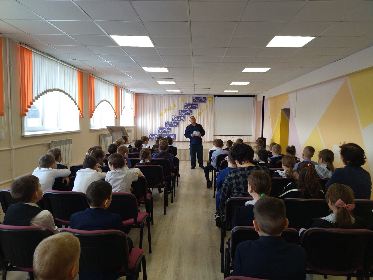 В ходе встречи с учениками была проведена беседа на тему: «Безопасность на водных объектах в период ледостава». Ребятам напомнили о запрете выхода на неокрепший лед, технику безопасности и правила поведения на льду. В ходе беседы с учащимися, государственный инспектор рассказал о реальных случаях беспечности людей на льду, приведших к несчастным случаям. Напомнил ребятам о запрете выхода на лед без сопровождения взрослых.