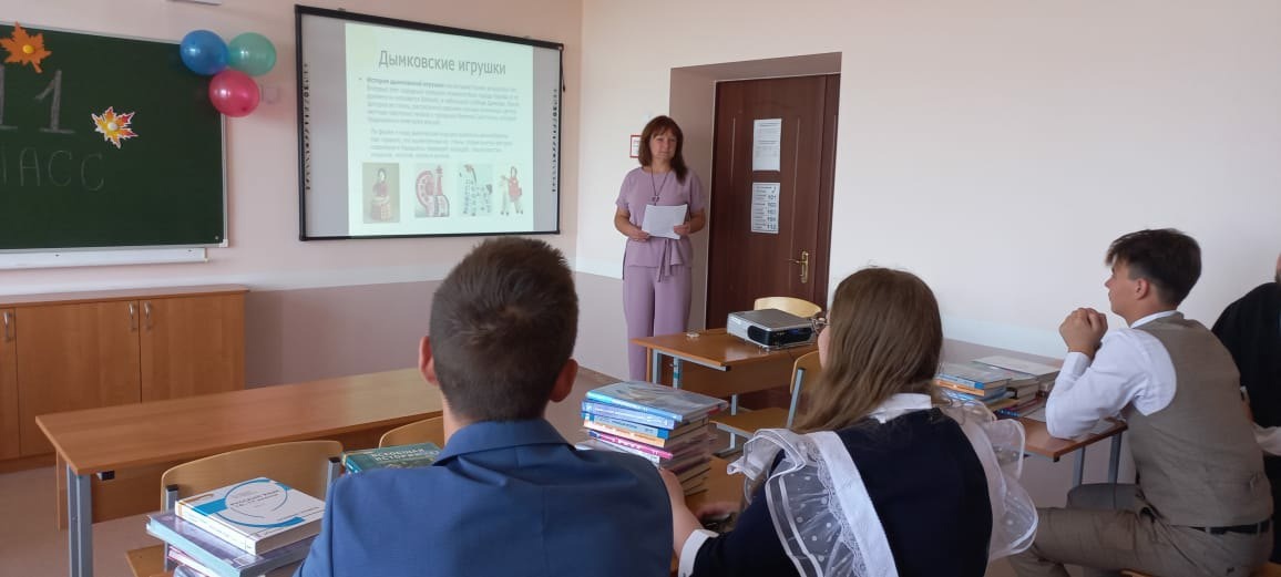 1 сентября в рамках Года национальных культур и традиций во всех классах прошли классные часы на тему "Народные художественные промыслы Республики Татарстан". Проведенные классные часы способствовали формированию у обучающихся представления важности и сохранения развития духовных ценностей, возрождения исконных национальных традиций, развитие национальных ценностей, обычаев культуры и традиций народов Республики Татарстан