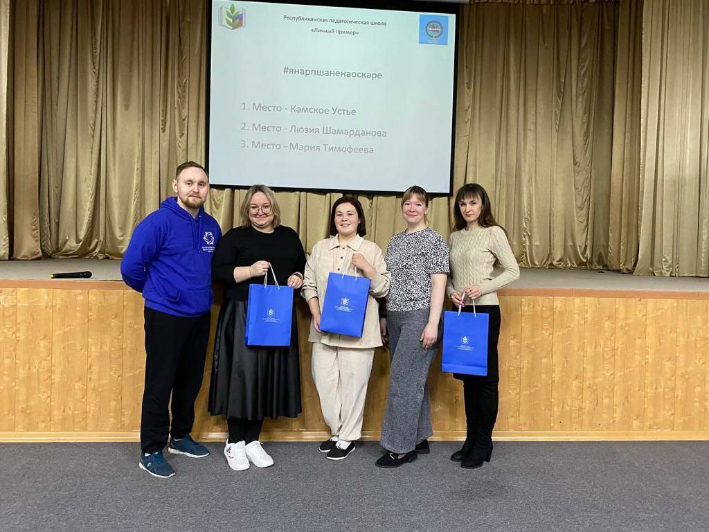 С 24 по 26 марта педагог нашей школы, председатель Совета молодых педагогов Камаретдинова А.И. побывала на Республиканской педагогической школе «Личный пример» в санатории «Ливадия-Татарстан» . Алина Ильгизовна получила огромный заряд положительных эмоций, познакомилась с коллегами из соседних районов, обменялась опытом. Также команда Камского Устья стала победителем в конкурсе фотографий.