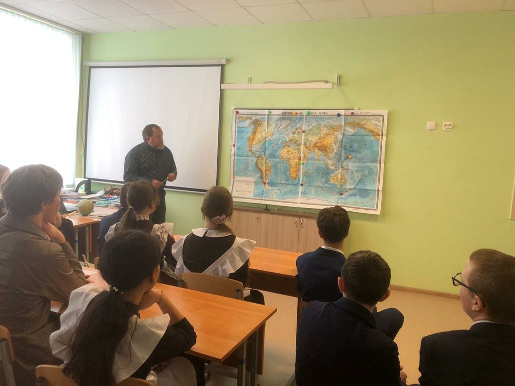 Профориентационная встреча. Двадцатого марта на встречу со школьниками пришел Алексашин Николай Дмитриевич. По профессии он геолог, закончил Санкт-Петербургский университет. Благодаря своей профессии Николай Дмитриевич посетил большое количество мест по всему миру и решил рассказать про самое далёкое и удивительное из них — про Антарктиду. Сам геолог побывал на снежном материке четыре раза. Он и его сокомандники изучали полезные ископаемые Антарктиды и составляли карту местности. На встречу с таким интересным человеком пришли учащиеся из разных классов, в том числе из второго. Ребята очень внимательно слушали и активно задавали вопросы. На каждый из них геолог охотно отвечал, часто вспоминая веселые и поучительные истории. Под конец Николай Дмитриевич рассказал ребятам, как важно учиться, и пожелал успехов. После этой встречи школьники задумались насчёт профессии, которая действительно может быть интересной. Спасибо Николаю Дмитриевичу за такую познавательную встречу!