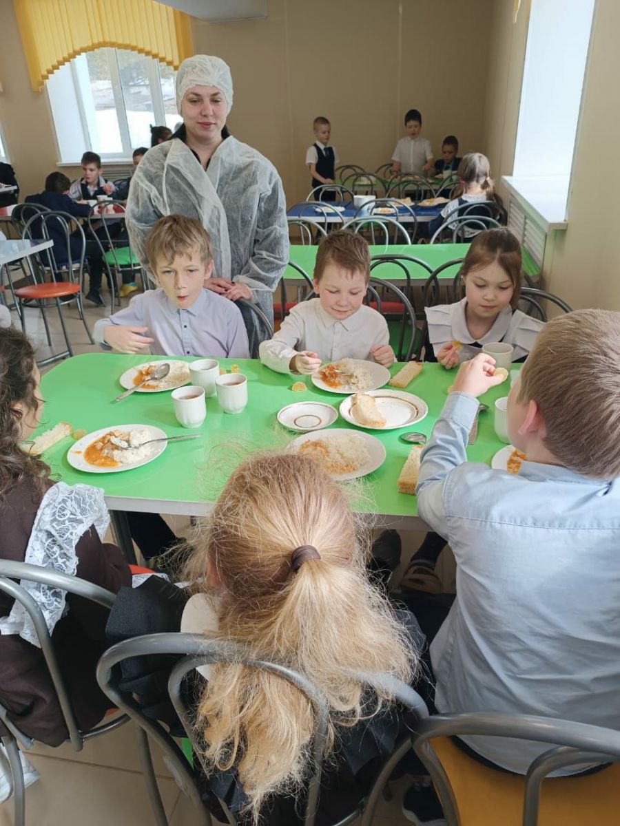 22 марта родитель 1 класса принял участие в контроле качества питания обучающихся в школьной столовой:Цель проверки родителем была в следующем:-выявить качество и процесс организации питания в целом.В ходе проверки родителем установлено что:- качество блюд полностью соответствует меню,-школьные столовые и принадлежности чистые,-еда очень вкусная и сбалансированная,-сотрудники столовой работают в спец.одежде, масках и перчатках,-дети едят с большим удовольствием!