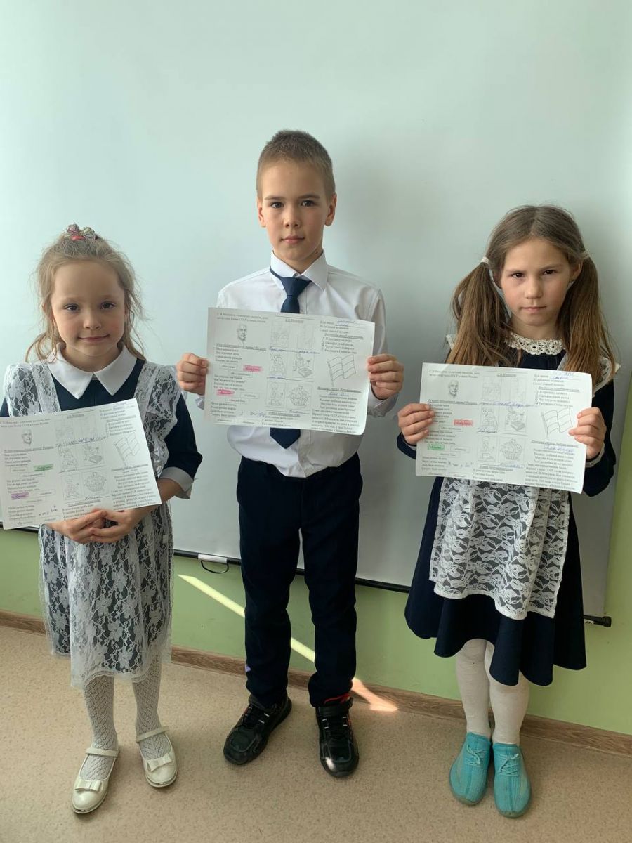 Внеурочное занятие в рамках Разговора о важном во 2 классе было по теме «110 лет со дня рождения я Советского писателя и поэта, автора слов гимна СССР и гимна России С.В. Михалкова». На занятии ребята расширили представления о творчестве С.В. Михалкова, читали и знакомились с произведениями , также учащиеся посмотрели видеофрагменты, презентацию, выполнили интерактивные задания, поработали в рабочих листах. Ребятам очень понравилось произведение «Дядя Степа». Стихотворение стало на только популярным , что появились памятники этому герою . По предложенному шаблону ребята сделали свои памятники Дяде Степе.