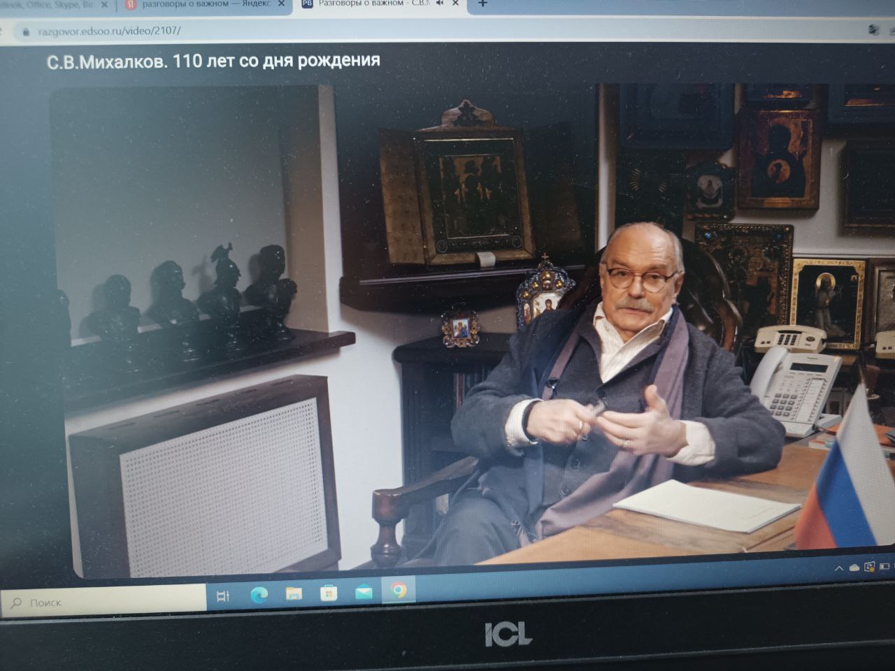 В понедельник, 13 марта в 8-9 классах состоялся традиционный урок для школьников «Разговоры о важном». На этот раз занятие было посвящено 110-летию писателя Сергея Владимировича Михалкова. Сергей Михалков был не только детским писателем и поэтом, но и военным корреспондентом в Великую Отечественную войну, а также автором слов трех Государственных гимнов нашей страны.В рамках урока школьники посмотрели видеообращения режиссеров Никиты Михалкова и Андрея Кончаловского. Они поделились своими воспоминаниями об отце, о детстве, рассказали об особенностях детской поэзии Сергея Михалкова.«В его стихах ребенок, во-первых, узнавал себя, во-вторых, учился быть ответственным за свои поступки, за свою семью, за страну. Его чувство патриотизма было абсолютно ненавязчивым, с одной стороны, ему удавалось сохранить детскую непосредственность, с другой- быть взрослым, серьезным, ответственным человеком», — рассказал Андрей Кончаловский. По его словам, тогда писатель не мог не быть звездой, если он был любим, а Сергей Владимирович был очень популярен и любим. По словам Андрея Кончаловского, и сегодня стихи Сергея Михалкова «абсолютно не утеряли своего высокого художественного смысла».«Только человек с таким детским, чистым сердцем мог писать такие стихи – как бы написанные самим ребенком»,— поделился своими впечатлениями от прочитанных уже во взрослом возрасте детских стихов отца Никита Михалков. По его словам, «такого рода поэзия, когда человек пишет от имени ребенка и с душой ребенка, — она вечна».