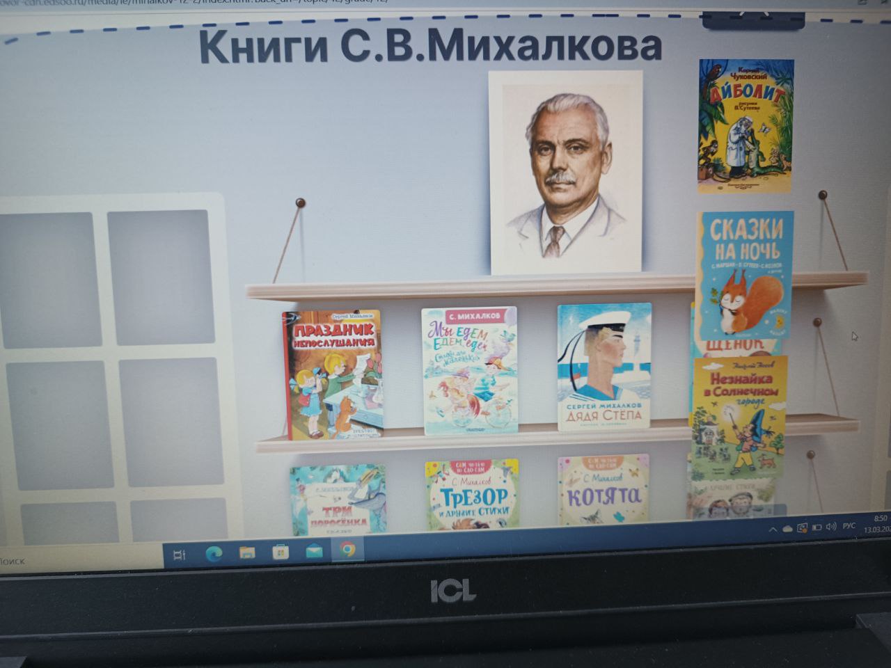 13 марта разговоры о важном 110 лет со дня рождения Сергея Михалкова. Учащиеся 1 класса встретились с творчеством знаменитого писателя.