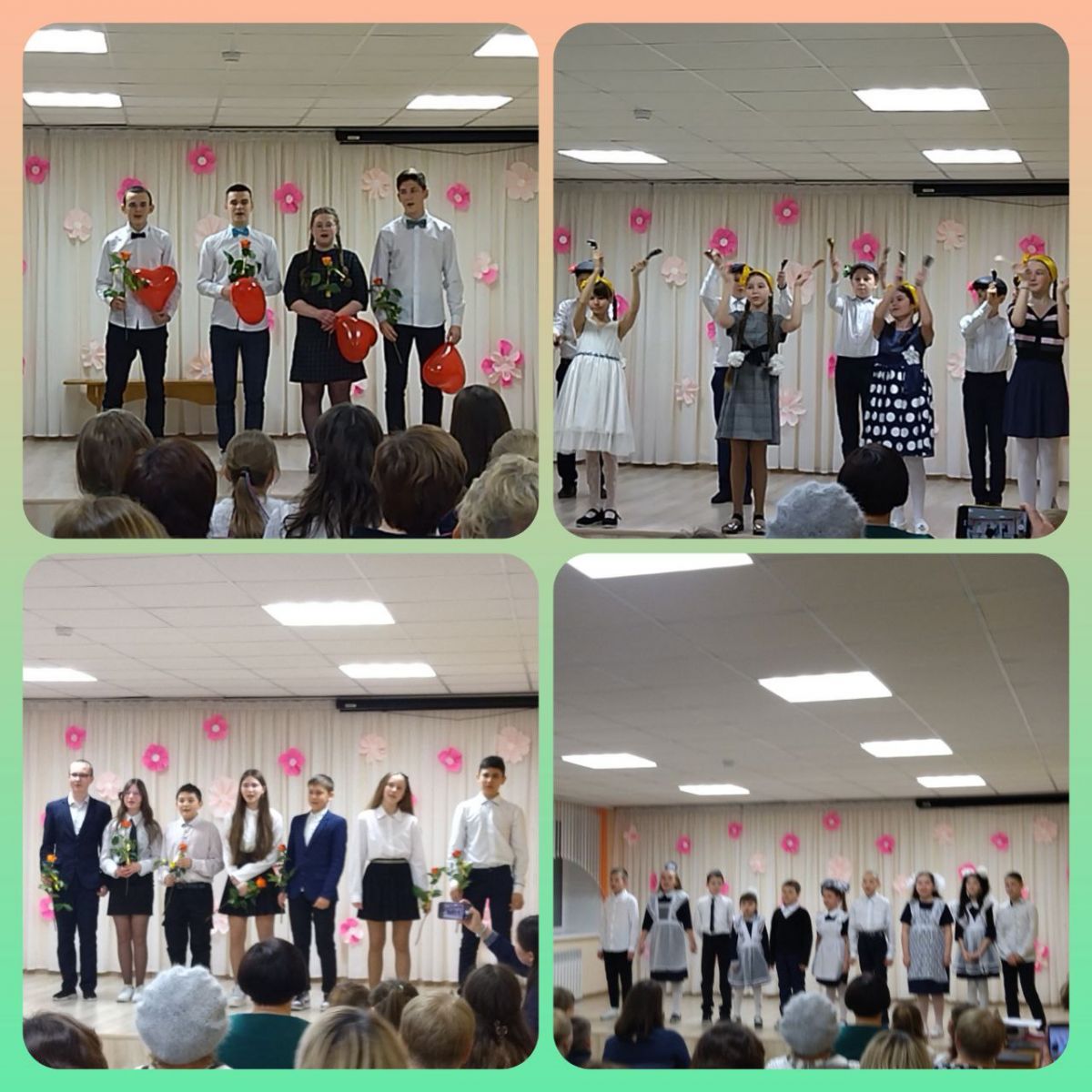 В преддверии праздника в нашей школе прошёл концерт, посвященный Международному женскому дню - 8 марта.Открыли мероприятие ученики начальных классов, которые подготовили удивительные номера художественной самодеятельности. Эстафету подхватили ученики 5-11 классов. Поздравления, песни, танцы, стихи звучали для мам, бабушек и девочек.Свои таланты показали все участники. Вокальные номера подарили присутствующим много приятных и положительных эмоций. Концертная программа оставила на память о себе солнечное, праздничное настроение! Мероприятие прошло в едином ритме и никого не оставило равнодушным.Большое спасибо всем, кто принял участие в подготовке и проведении этого замечательного праздника!