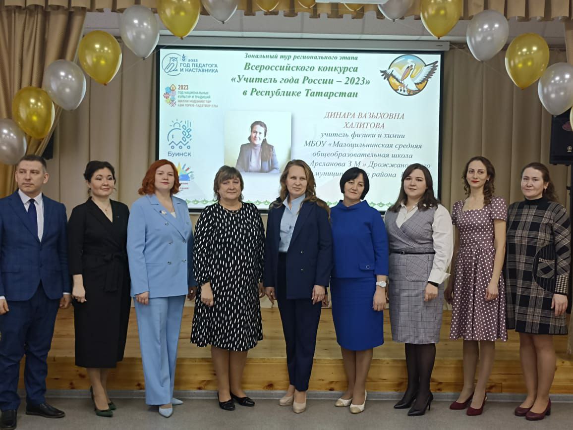 9 февраля 2023 года на базе МБОУ «Лицей – интернат для одаренных детей г. Буинск Республики Татарстан» прошел зональный этап всероссийского конкурса «Учитель года России». Целью конкурса являются выявление, поддержка и поощрение передовых школьных учителей, распространение их педагогического опыта и повышение престижа труда учителя.В этом году в конкурсе «Учитель года» нашу школу представляла Чекутова Г.Н., учитель начальных классов. Педагог отлично показала себя на муниципальном и зональном этапах и была награждена сертификатом участника зонального этапа Всероссийского конкурса «Учитель года России – 2023».