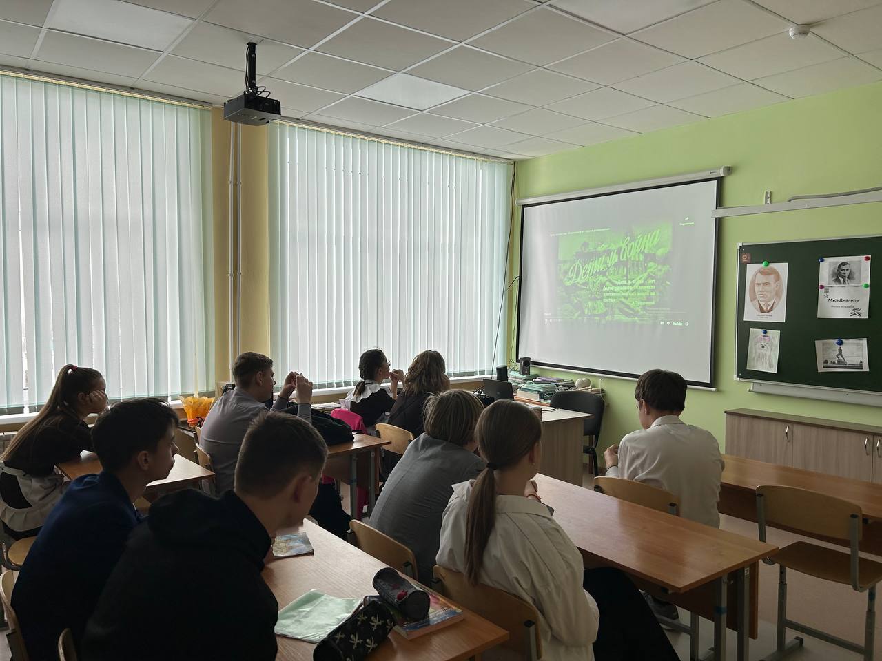 В рамках месячника гражданско- патриотического воспитания в нашей школе прошёл урок мужества. Учащиеся 8 класса просмотрели фильм "Равняемся на героев-ровесников". Ребята познакомились с детьми-героями, как Валя Котик, Марат Казей, Зина Портнова, Леня Голиков, Александр Матросов, Володя Дубинин, Зоя Космодемьянская, Сергей Тюленин и многими другими настоящими патриотами.