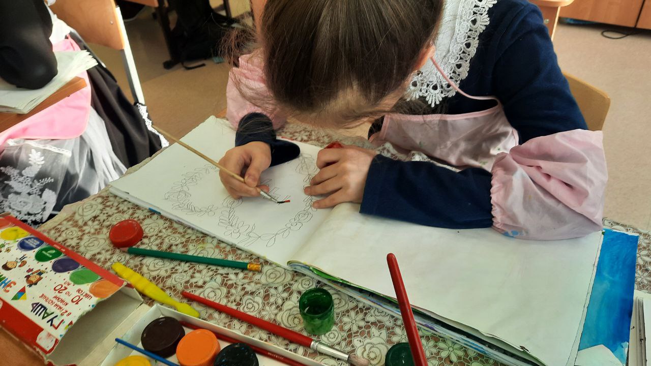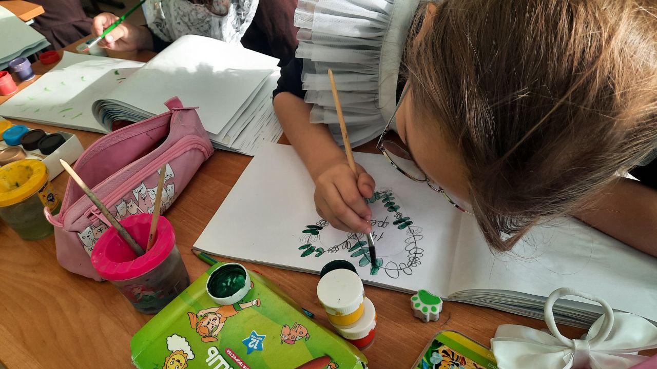 Внеурочная деятельность "Радуга творчества". На занятии ребята рисовали красивые открытки-сердечки из цветов, чтобы поздравить своих родных с Днем Святого Валентина.