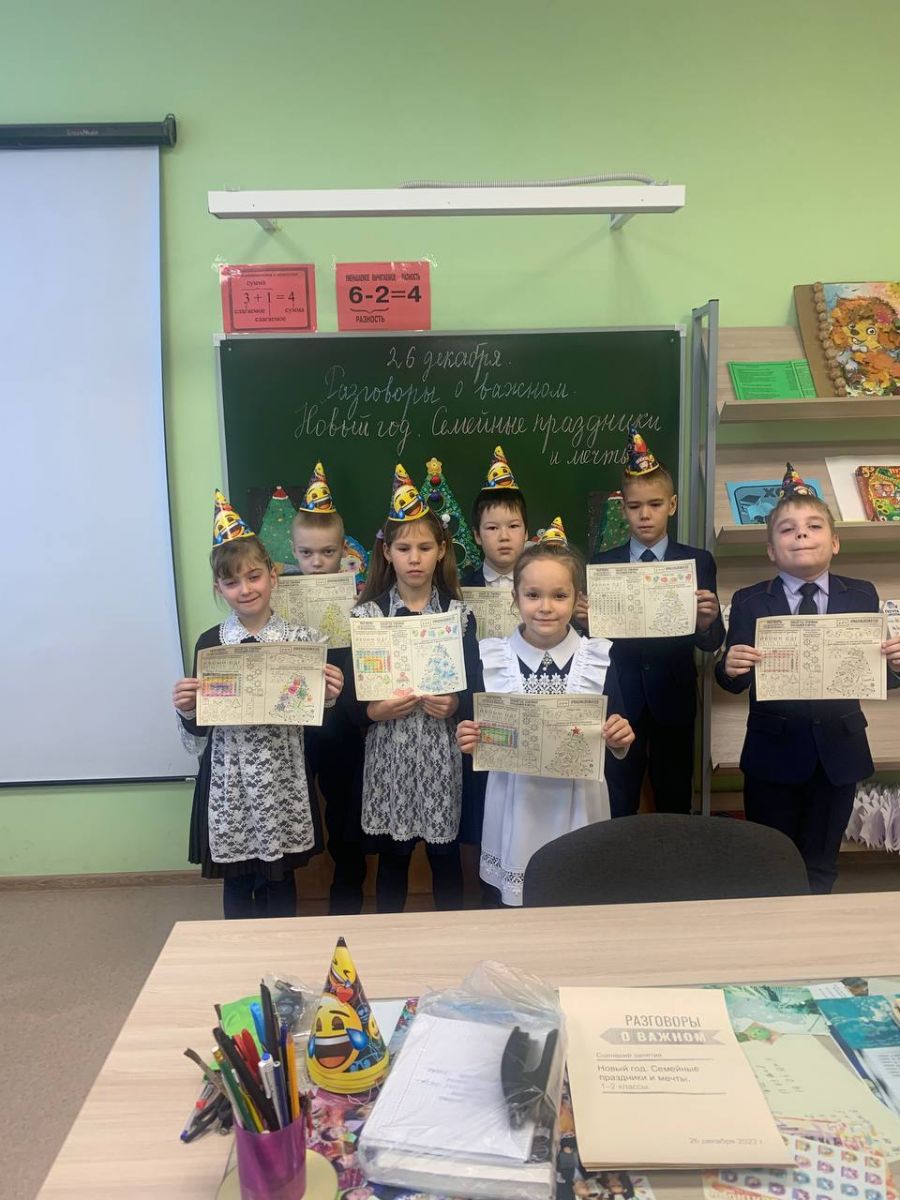 26 декабря, в рамках проекта "Разговоры о важном" в 5-7 классах прошёл классный час на тему "Новый год, семейные традиции" Просмотрели поздравление С. С. Кравцова, министра образования и науки РФ. Ученики играли в интерактивные игры, делились своими мечтами о будущем, пожеланиями на Новый год.