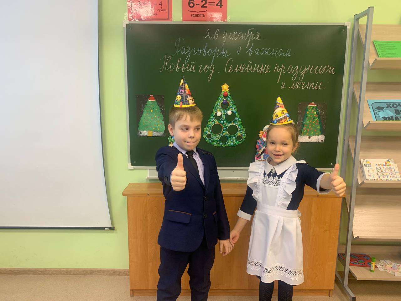 Разговор о важном сегодня прошёл в 1 классе. Ребята узнали об истории возникновения Нового года. Прослушали поздравления от Деда Мороза из Великого Устюга, от Министра просвещения Российской Федерации С.С. Кравцова. В заключении поиграли в интерактивную игру желаний.