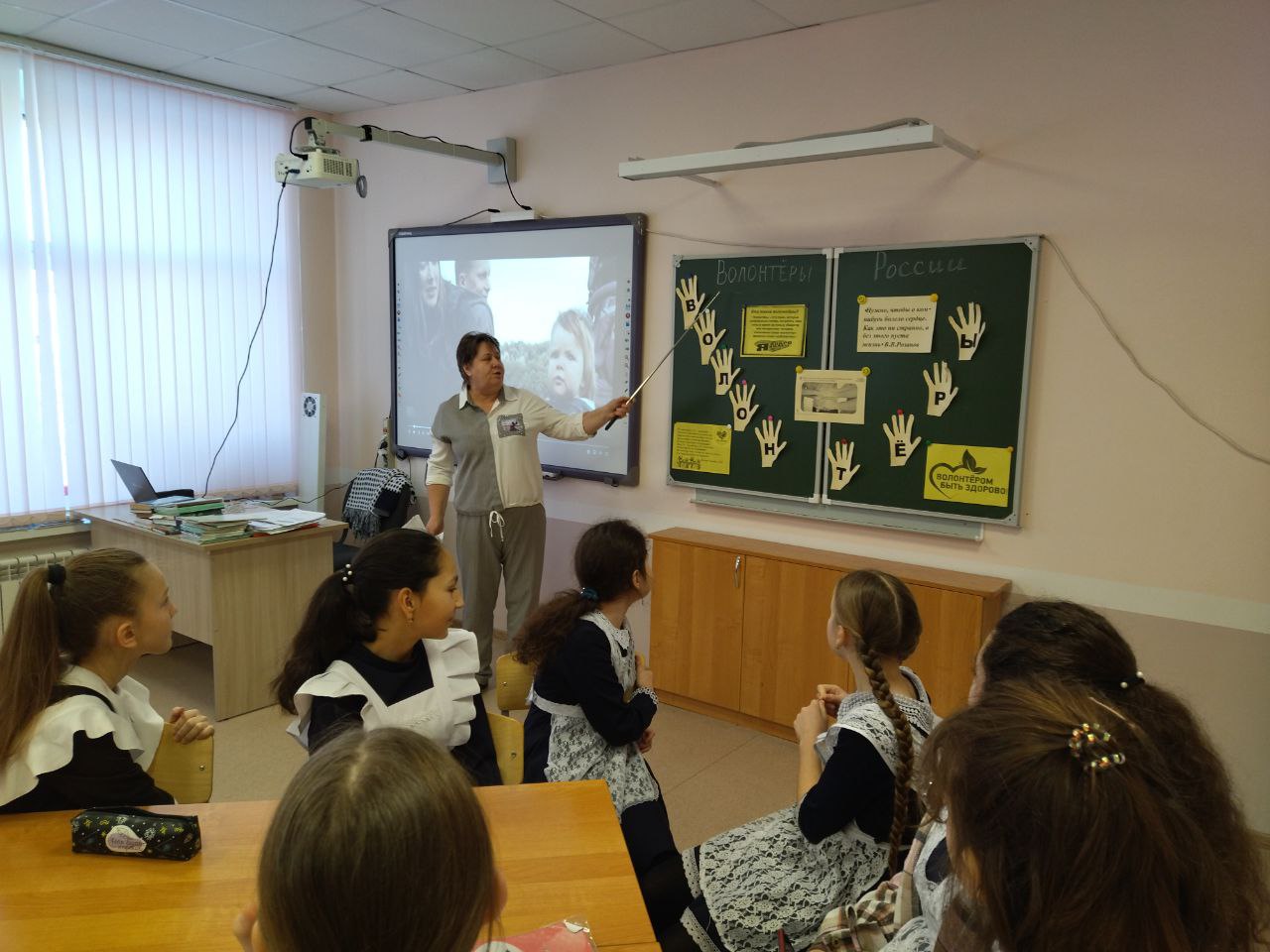 Во 2 классе прошло очередное внеурочное занятие по теме «Если добрый ты…». Данное занятие было направлено на формирование первоначальных представлений, что такое добро, доброта, доброжелательность . Ребята познакомились со значением слова «волонтеры», послушали ответы известного российского актера - Константина Юрьевича Хабенского про волонтеров, посмотрели историю , которая произошла с главной героиней - девочкой Феклой ( «Гимн Добра»), работали с интерактивными заданиями, прослушали и пели песни про добро, работали в рабочих листах.