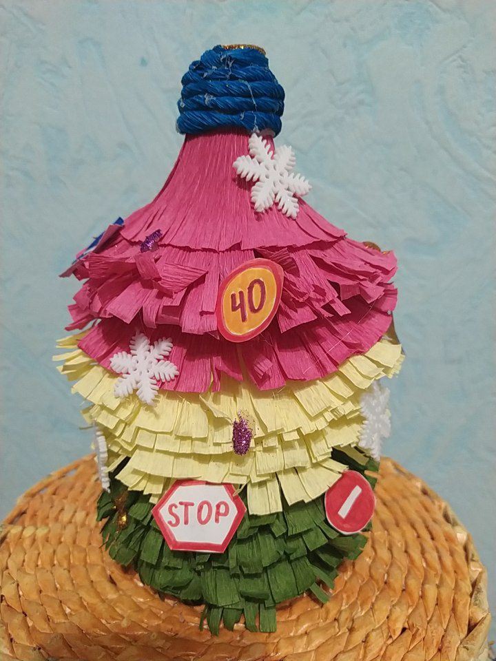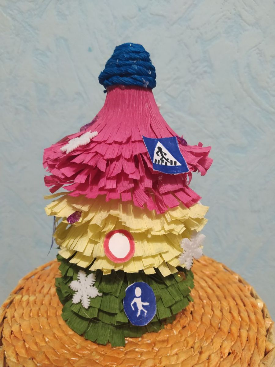 Миннигалеев Рамиль, ученик 7 класса, принимает участие в конкурсе "Безопасность дорожного движения" в номинации "Новогодний подарок" (Елочка-светофор)