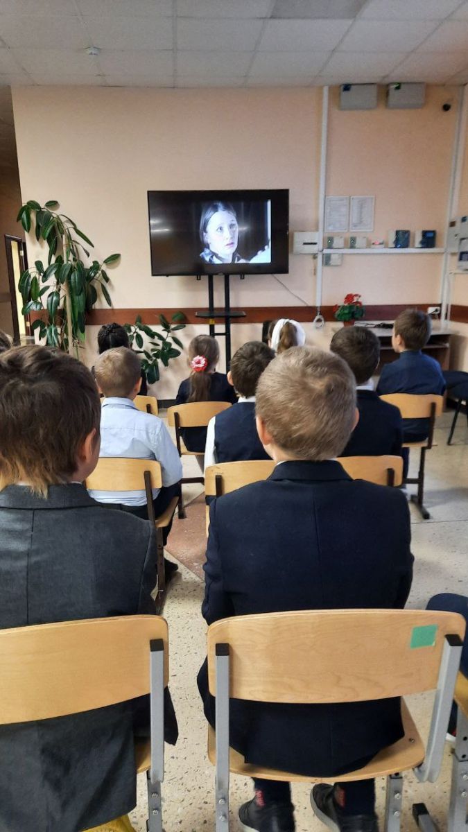 Для учащихся школы был организован киноурок "Наследники Победы". Быть наследником Победы, значит помнить и гордиться подвигами нашего народа, которые живы в истории каждой семьи. Ученики начальных классов просмотрели фильм и поняли, как важно помнить о войне и о тех, кто там погиб.
