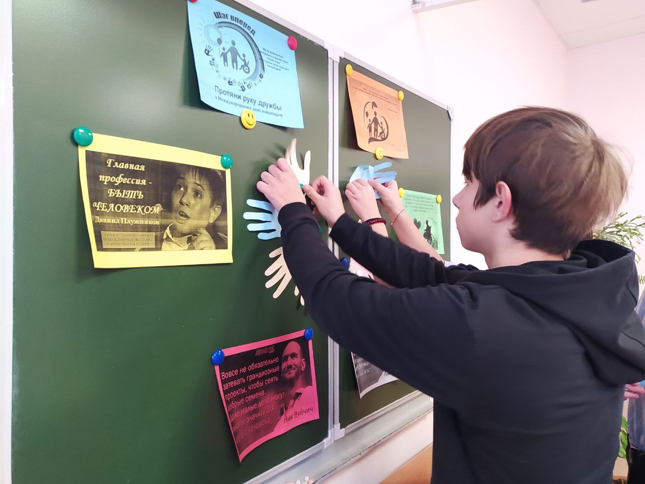 5 декабря в 8-9 классах прошло мероприятие в рамках проекта "Разговора о важном", посвященное Международному дню добровольца, Всероссийскому дню волонтера. Целью мероприятия было формирование представления о жизни как проявлении себя в различных видах волонтёрской деятельности, самореализации в конкретных действиях и поступках; воспитание нравственных качеств личности (доброты, милосердия, сострадания, благородства, готовности прийти на помощь). В ходе мероприятия ребята познакомились с историей возникновения волонтёрского движения в России, прослушали интервью с К. Хабенский, учредителем благотворительного фонда. Затем ребята познакомились с интернет-сайтами и ресурсами волонтёрского движения. В завершении ребята провели минутку идей по волонтёрскому движению, которые ребята могут организовать самостоятельно.