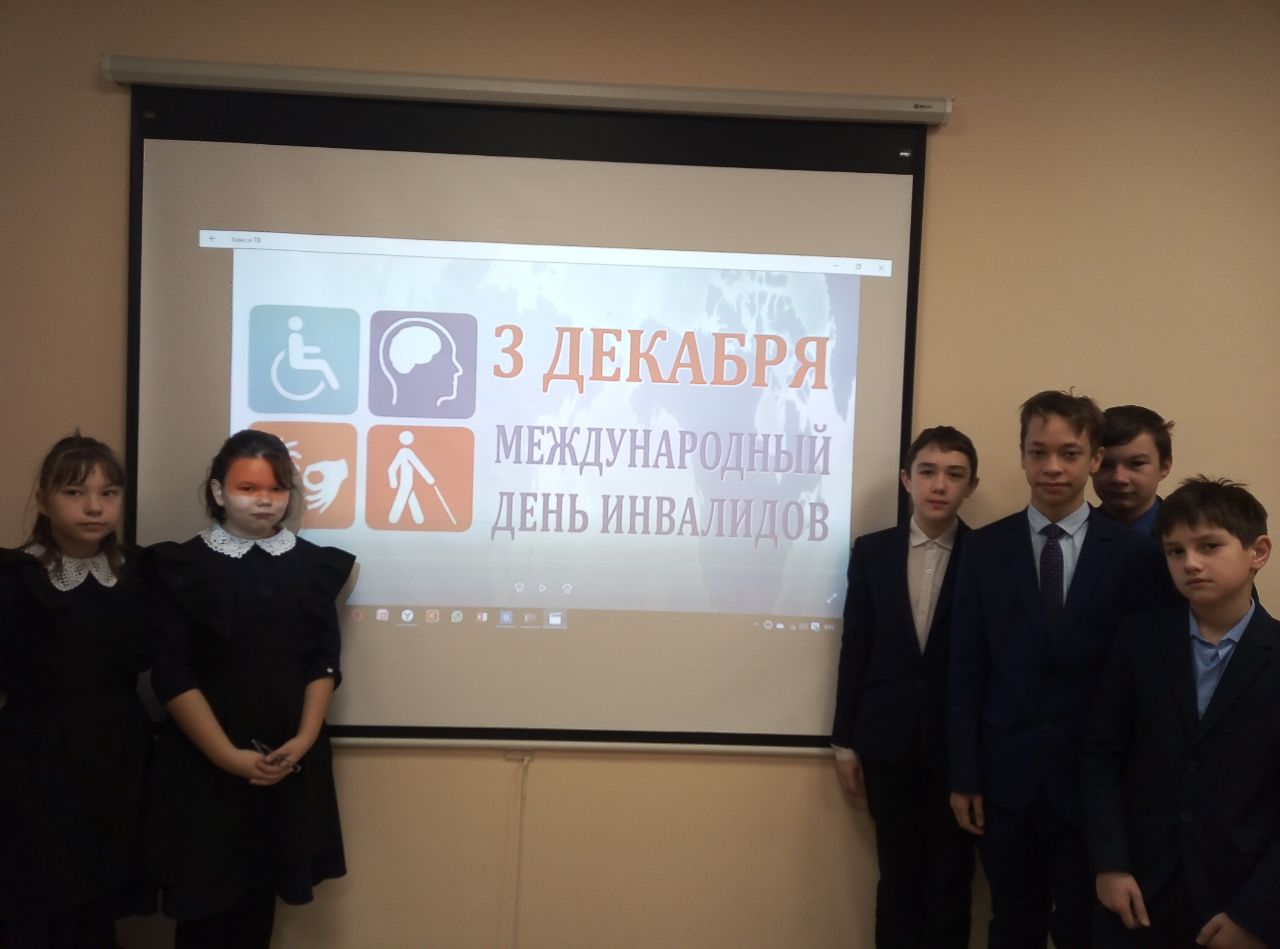 2 декабря в 9 классе прошел классный час "Путь к успеху", посвященный Международному дню инвалидов. Ребята просмотрели о обсудили видеоролики о жизни Д. Плужного - победителя программы "Голос дети", о победах наших параолимпийцев. В ходе мероприятия ребята познакомились с бочча - видом спорта для людей-колясочников с диагнозом ДЦП, узнали об их победах и достижениях. В завершении классного часа была проведена акция "Мы вместе". В знак солидарности и помощи людям с ОВЗ ребята составили символ толерантности.