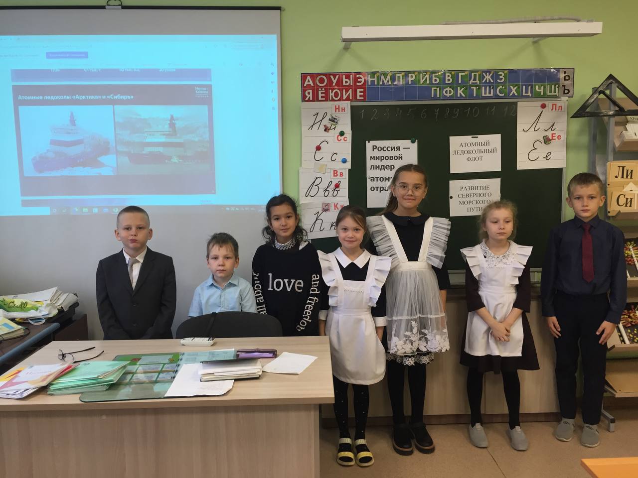 24 октября в 1 классе прошел очередной классный час «Разговор о важном» -«Россия − мировой лидер атомной отрасли».- «Атомный ледокольный флот.Развитие Северного морского пути». Учащиеся познакомились с природными явлениями Северного полюса, с его обитателями. Узнали об особенностях российской Арктики и значении Северного морского пути, представления об атомном ледокольном флоте.