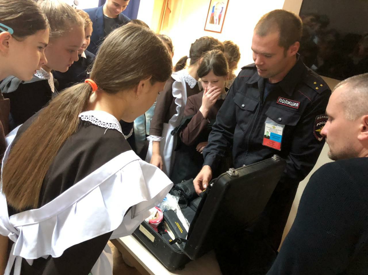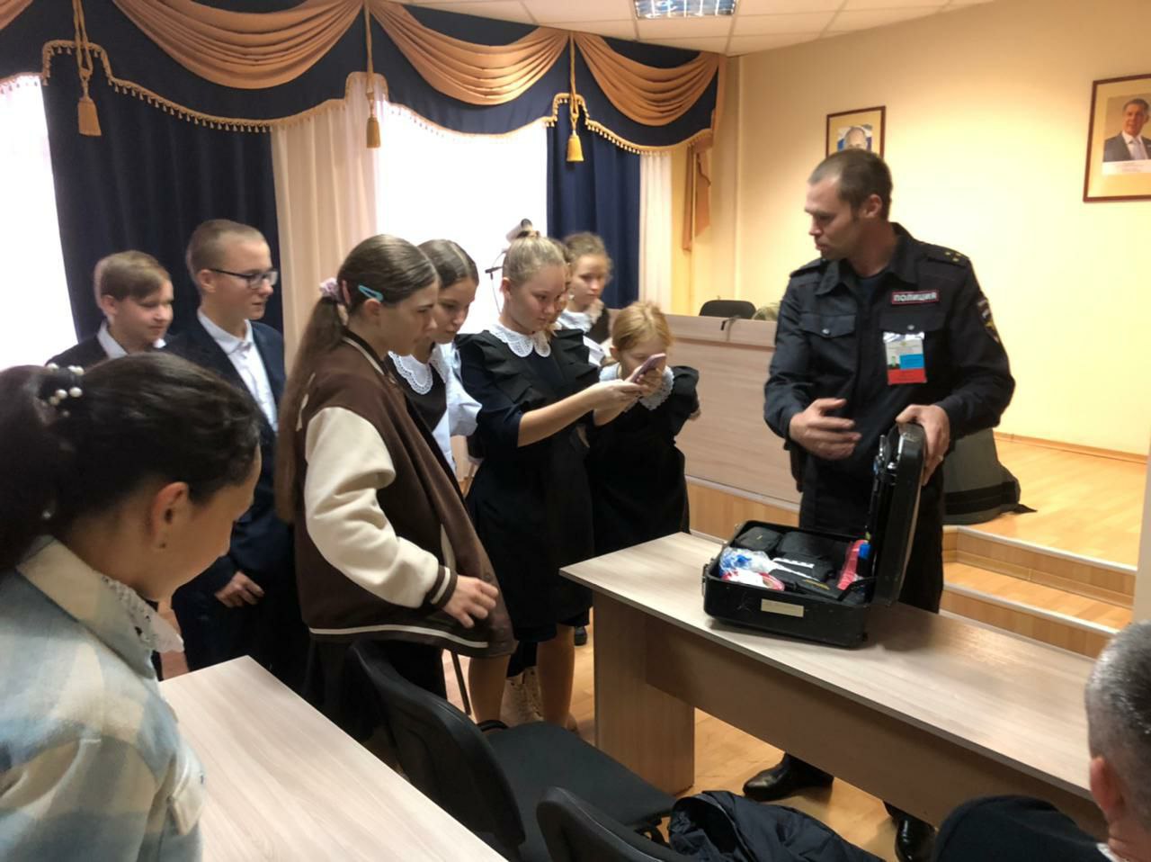 7 октября учащиеся нашей школы побывали на экскурсии в отделе полиции. В гости к стражам порядка пришли ученики 7-8 классов.Сначала ребята посетили дежурную часть. Они узнали, что данное подразделение несёт службу в круглосуточном режиме. Затем школьников познакомили со структурой органов внутренних дел и различными службами полиции: следственным отделом, отделением дознания, подразделениями уголовного розыска, участковых уполномоченных полиции и по делам несовершеннолетних.Особый интерес у школьников вызвал рассказ инспектора ПДН Галимовой Н. М. В ходе визита подросткам напомнили о том, какими правилами и обязанностями они обладают, с какого возраста и за какие правонарушения несовершеннолетние могут быть привлечены к ответственности, а также гостям разъяснили как не стать жертвой преступления.Продолжилась экскурсия в отделе кинологической службы, где стражи порядка познакомить юных гостей с работой подразделения. Также школьники посетили музей отдела полиции.