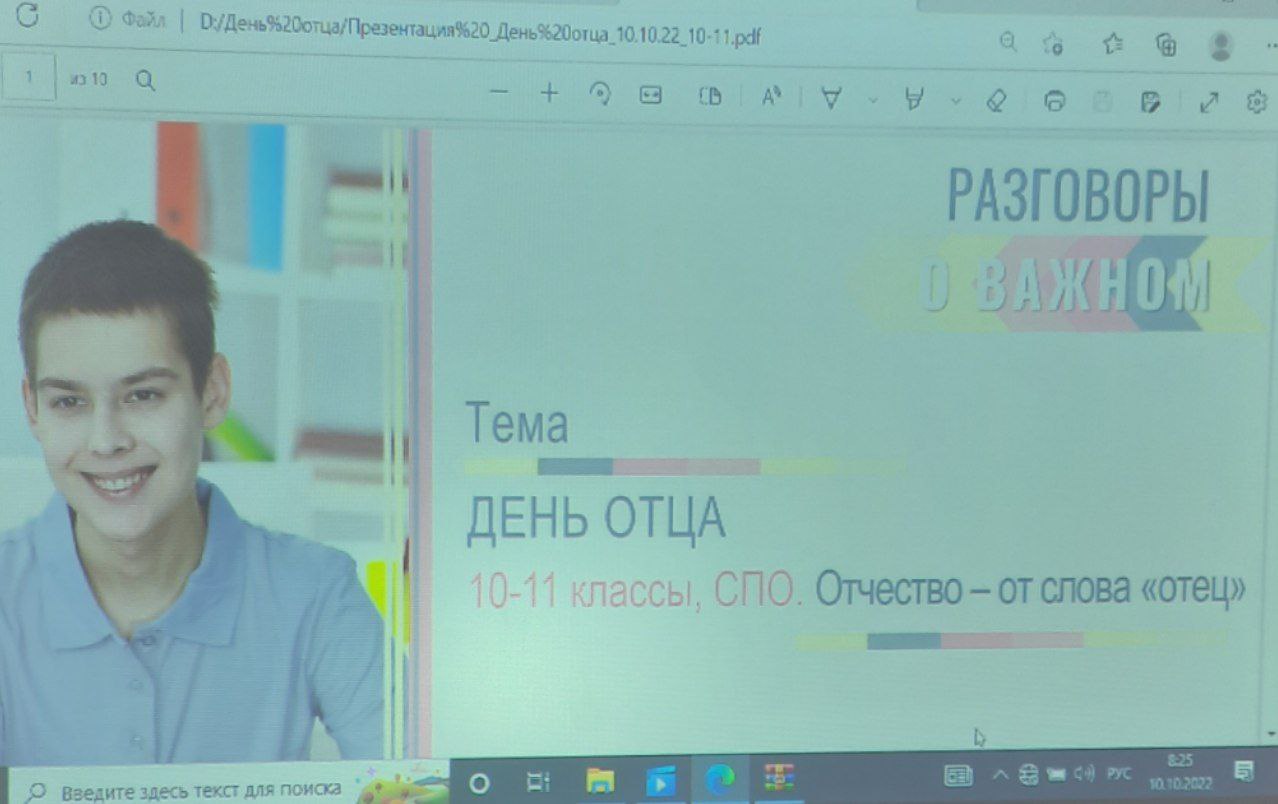 В 10-11 классах проведен классный час на тему "День отца" в рамках Всероссийского проекта "Разговоры о важном". Цель мероприятия - развитие у учащихся ценностного отношения к роли отца в семье, обществе и государстве. На занятии старшеклассники познакомились с материалами истории, литературы, отечественного кинематографа, с воспоминаниями известных людей, в которых осмысливалась роль мужчины-отца в воспитании детей и становлении их личности. В ходе диспута учащиеся вывели основные качества главы семьи и положительные типы взаимоотношений отцов с детьми.