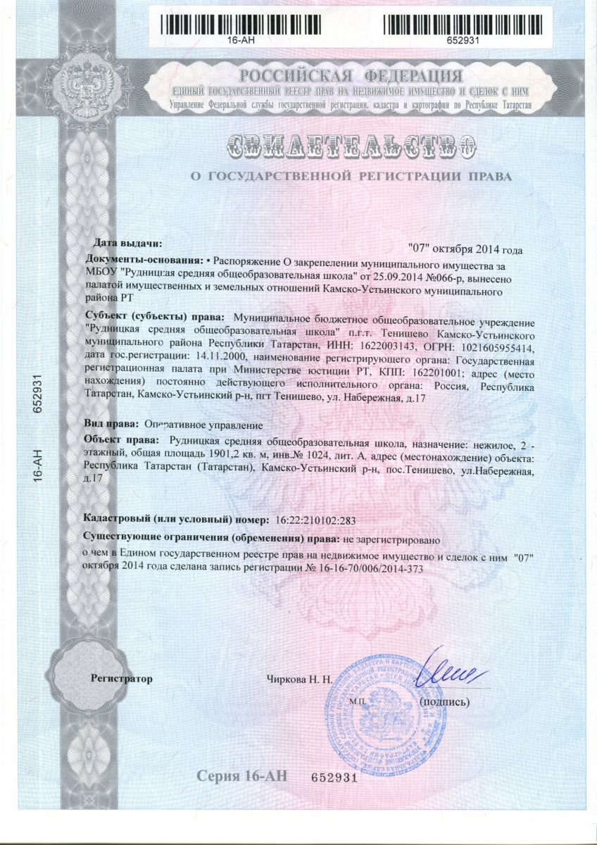 Муниципальное бюджетное общеобразовательное учреждение «Рудницкая средняя общеобразовательная школа» п.г.т. Тенишево Камско-Устьинского муниципального района РТ