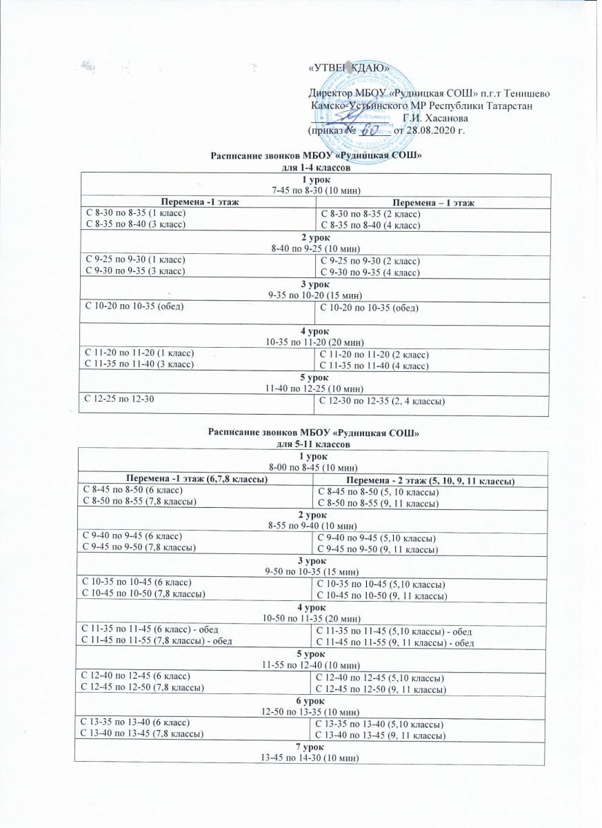 Графики организации учебного процесса в условиях распространения COVID-19 (приход в школу, перемены, питание)