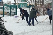 Обучающиеся 7-10 классов приняли участие в акции "Снежный десант" Они очистили территорию школы от снега.