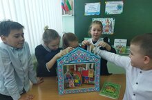В честь празднования "Международного дня родных языков" на уроке татарского языка с 4 классом был организован просмотр татарской народной сказки "Алтын бортеклэр" ("Золотые зернышки'), знакомство с новыми выпусками журнала "Салават купере"и проведён мастер-класс по национальным костюмам разных народов.