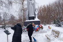 Сегодня обучающиеся 9 класса очистили от снега памятник, погибшим воинам в годы Великой Отечественной войны 1941-1945 гг.